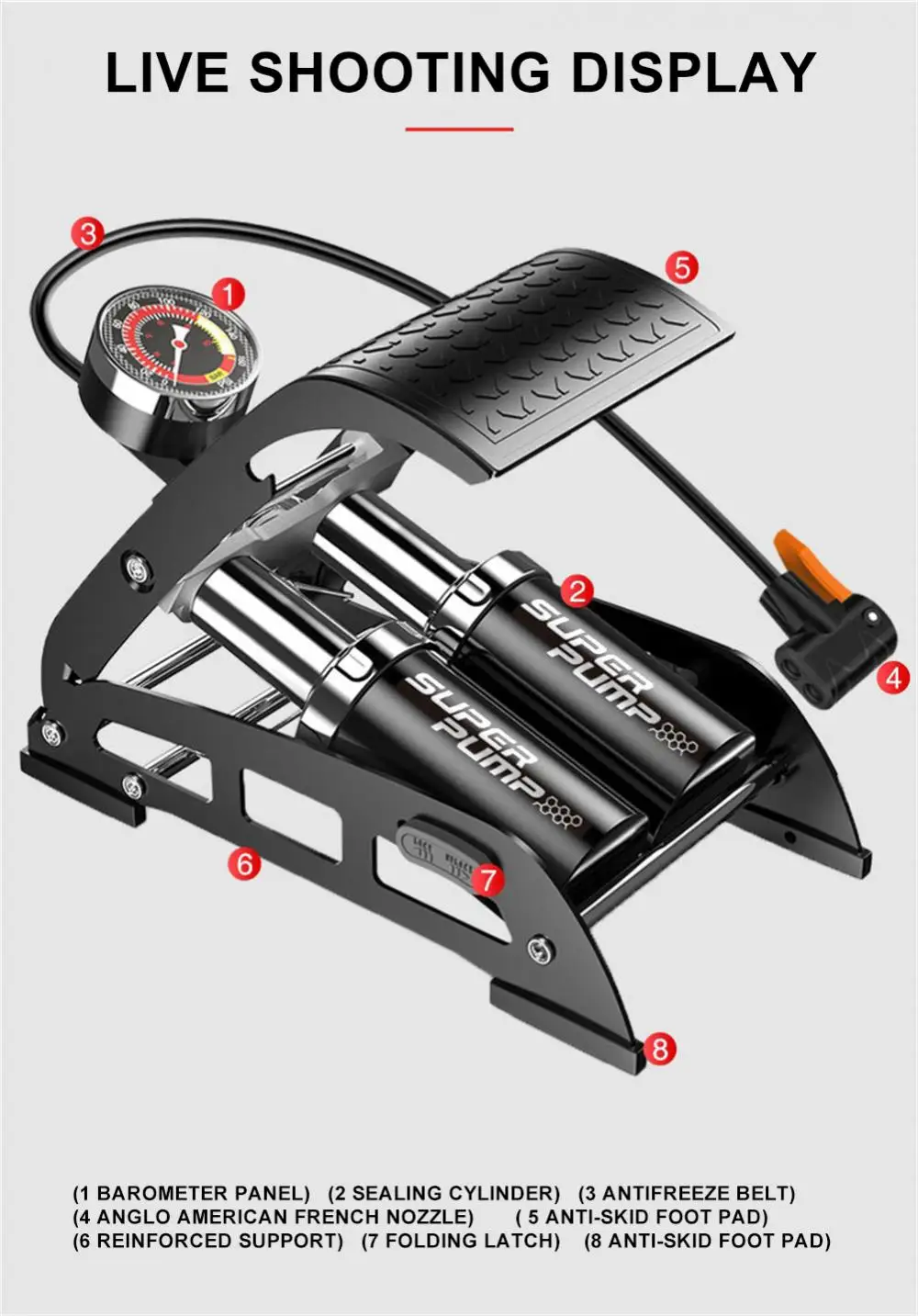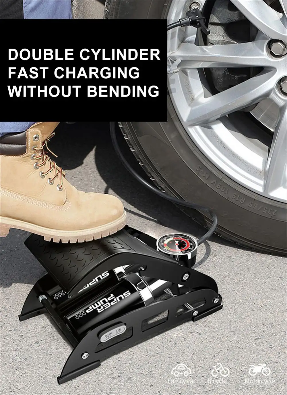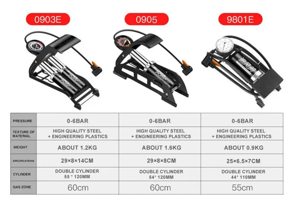 Ideale per la casa o i viaggi, questa pompa a pedale è versatile e affidabile per tutte le esigenze di gonfiaggio.