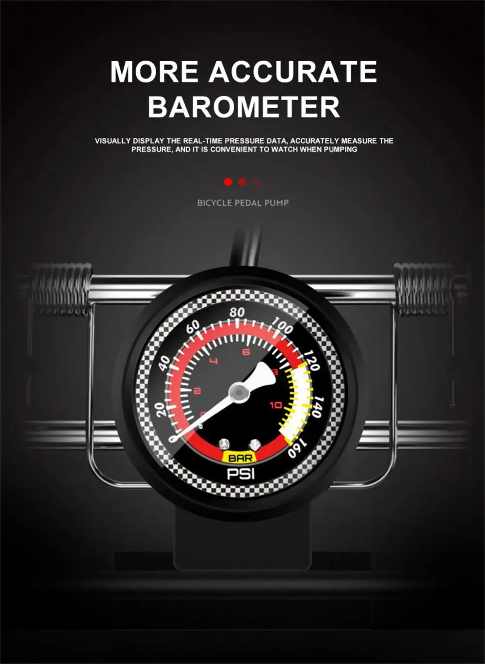 Pompa a pedale portatile con manometro di precisione per bici, auto, moto e altro ancora